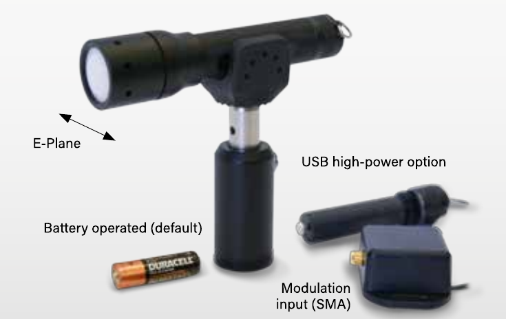 World’s first CMOS THz torch operated with a 1.5 V AA battery and adjustable dual lens optics.